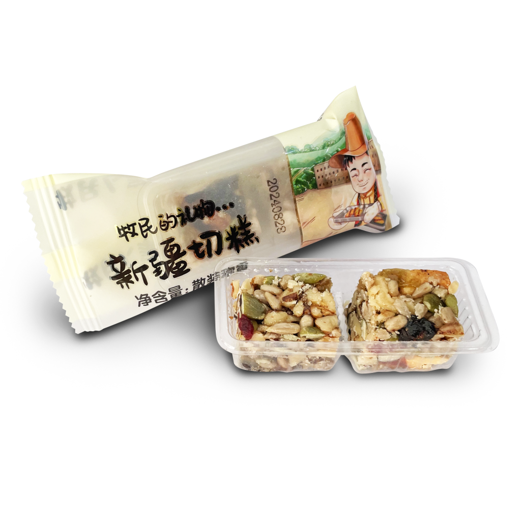 是維吾爾族民眾採用傳統特色手工工藝,以核桃仁、巴旦木、葡萄乾、腰果、芝麻等原料,配上蜂蜜熬製而成的民族特色糕點。